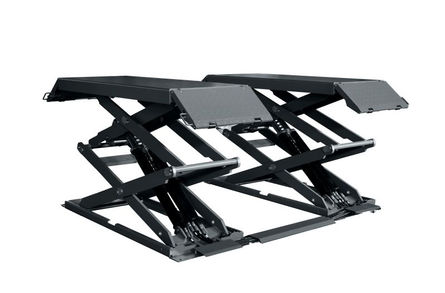 This double scissor lift is designed for lifting various vehicles weighing up to 3500 kg. Using this lift, you will be able to perform various car repair work, from simple rim replacement to complex transmission and chassis repairs. Due to its easy installation, you will be able to use it in garages, workshops and car service stations.